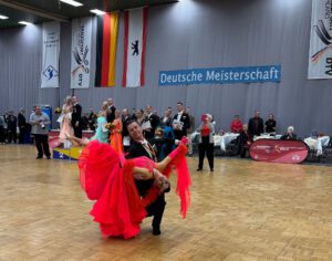 Erwähnenswert ist auch, dass Angela und Michael (ein befreundetes Paar, was u.a. Latein bei Teilen des Trainerteams trainiert), Platz 7 im Semifinale erzielte wie auch auf der Latein DM! Damit gehören sie in beiden Disziplinen zur Deutschen Spitze! Dran bleiben – dann sehen wir Euch in der nächsten Latein und/oder Standard DM im Finale!
