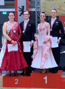 In der Hauptgruppe II B-Standard (die mit der A kombiniert war) holten Sarah und Max aus Berliner Sicht den Vizemeistertitel und wurden in der Gesamtwertung Dritte. Prima! Zwei weitere Balance Paare folgten auf den Plätzen 4 und 5: Viktoria und Carl, sowie Ulrike und Rainer. Viktoria und Carl konnten vor allem im Wiener und Slow Fox punkten, wo sie Platz 2 und 3 erzielten. Gut!