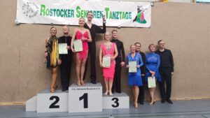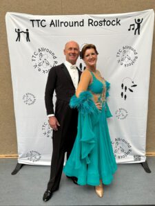 Peggy und Dietmar konnten in der Masters III A-Standard zweimal die 1. Zwischenrunde erreichen. Gut! In der Masters III A-Latein tanzten sie an einem Tag mit dem 6. Platz im Finale und erzielten am anderen Tag mit dem 7. Platz den Anschlussplatz. In beiden Disziplinen in der zweithöchsten Klasse zu tanzen, ist schon ein hoher Anspruch – Respekt – hier heißt es weiter dran bleiben!