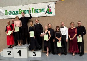 Unsere Gastpaare Claudia und Dirk (Platz 5), sowie Ilka und Peter (Platz 6) erreichten in der für sie „jüngeren“ Altersklasse ebenso das Finale. Sehr schön!!! Besonders Gratulieren wollen natürlich auch Liudmila und Frank, die den Ostdeutschen und Berliner Meistertitel holten – Herzlichen Glückwunsch!!! Beide trainieren auch mit Teilen unseres Trainerteam.