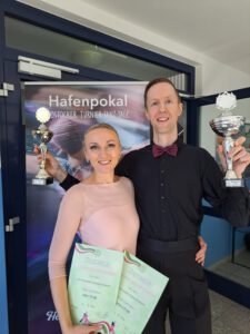 Viktoria und Carl erzielten in der Hauptgruppe I B-Standard den 6. Platz und in der Hauptgruppe I C-Latein den 8. Platz. Beide waren nach einem Infekt in der Woche noch etwas kraftlos unterwegs. Insofern war das Turnier eher als Training zu sehen.
