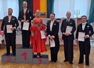 Im Turnier der Solo Masters IV/V B/A/S-Standard schaffte Herbert es bis ganz nach oben und souverän auf das Siegertreppchen. Mit allen gewonnen Tänzen sicherte er sich gekonnt den Deutscher Meistertitel in dieser Solo Klasse – Herzlichen Glückwunsch zu diesem tollen Ergebnis!!!