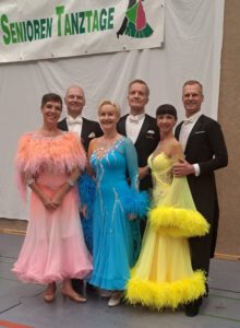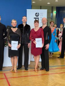 Dagmar und Wolfgang tanzten auch ihr letztes Turnier in diesem Jahr und Ihr erstes offizielle Turnier in der Masters IV S-Klasse. Es war ein stark besetztes Feld, in dem sie noch nicht das Finale erreichen konnten. Am Ende wurde es der 8. Platz. Auf dem Foto sieht man die beiden zusammen mit Birgit und Stefan.