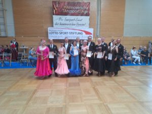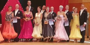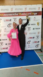 Anna und Sven konnten nach einer Vor- und Zwischenrunde das Finale der Masters II B-Standard erreichen und sich hier bis auf das Siegertreppchen vortanzen. Sie erzielten den 3. Platz. Sehr gut! Auch in der jüngeren Masters I B-Standard tanzten sie sich bis in das Finale. Gut! Hier reichte es aber nur für den 6. Platz. Insgesamt eine prima Leistung, mit der beide sehr zufrieden waren.