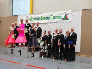 Einen tollen Tag erwischten heute Doris und Karsten: Sie erreichten in der Masters II A-Standard das Finale und dort den 3. Platz auf dem Siegertreppchen. Gut! Das Latein-Finale der Master II A-Latein gewannen sie dann deutlich – sie konnten alle 5 Tänze gewinnen. Herzlichen Glückwunsch!