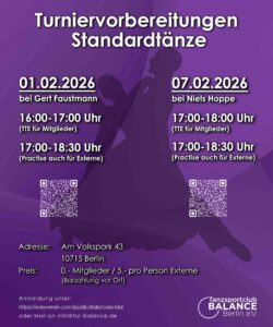| 04/2026 | 19.04.2026 | 18:00-19:30 | Standard Latein | Stefan Heinrich Oliver Timm | Open Practice | frei | 5,- |